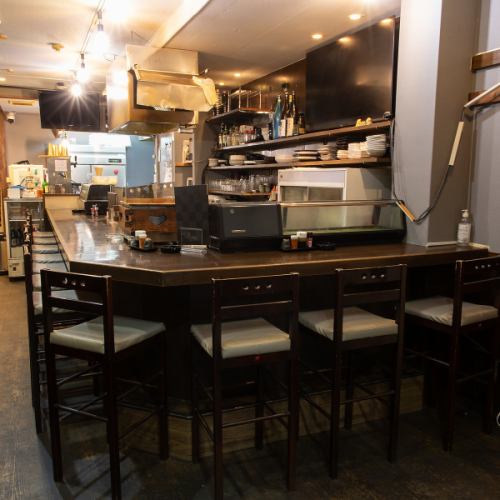 【おひとり様~デート利用まで◎】カウンター席は、一人飲みやデート利用に最適な心地よい空間です◎目の前で料理を作る様子を楽しみながら、調理の技を間近に感じられます。カウンター席は気軽にお立ち寄りいただけるため、お一人様でも安心してご利用いただけます。また、デートでの特別なひとときにもぴったりです♪